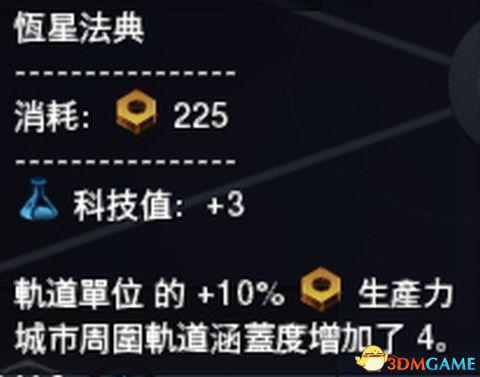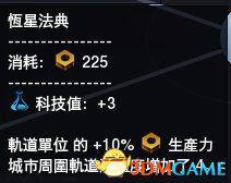 恒星法典的3点科技值增长比较有限,生产轨道单位时增加10%的产能就更浪费表情了。
