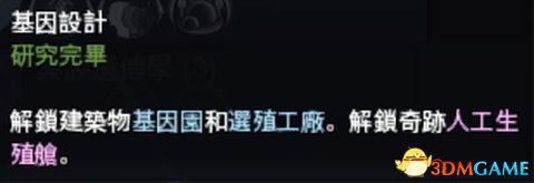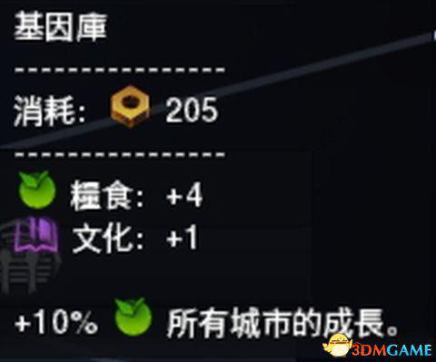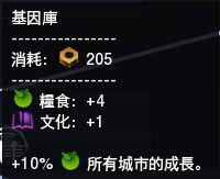 +3食物数值产出,所有农场食物产出再+1。完成基因库后马上就可以研究“基因设计”来解锁这个奇迹,一气呵成。