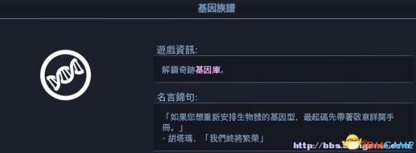 c. “遗传学”分支与“异族生命形态”、“基因族谱”分叶: