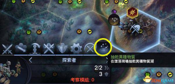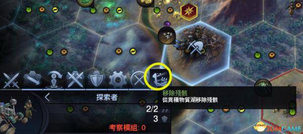 注意六角形方格左上角的图标,类似可以考察的图标还有几种。当出现如图所示的图标时,就需要我们手动把探索者移动到该格内