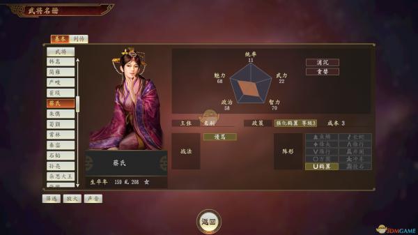 在《三国志14》这款游戏中, 有很多的武将,这些武将都是在三国演义以及三国历史中出现的角色,比如蔡氏就是作为武将出现在游戏中的,玩家“abcdqqq2”带来了《三国志14》蔡氏武将点评,感兴趣的小伙伴就来看看吧。