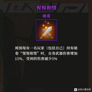 不仅要队友也持有该秘卷,还要该队友在自己身边(又不清楚距离),所以大部分情况下可视为自己加15%武器伤害,减少5%受到伤害。同样不要为了贪加成而和队友无脑贴贴。在队友持有的情况下优先级要高一点。也是狗提升大一点。