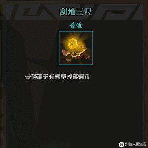 破个罐子有概率掉1块钱,谁闲得无聊整天打罐子啊,把罐子全打了也就赚个100来块,还不如拿把刺猬去爆头炼金来得实在。凑数秘卷。
