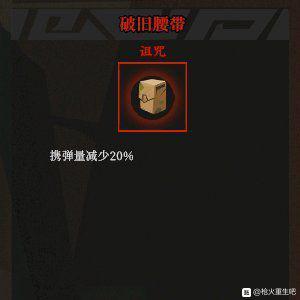 破旧腰带是《枪火重生》中的一张秘卷,有很多小伙伴对于这张秘卷的效果还不是很清楚,其实这是诅咒秘卷的一种,“49475147”的这篇《枪火重生》破旧腰带诅咒秘卷点评为大家带来了其具体效果,一起来看看吧。