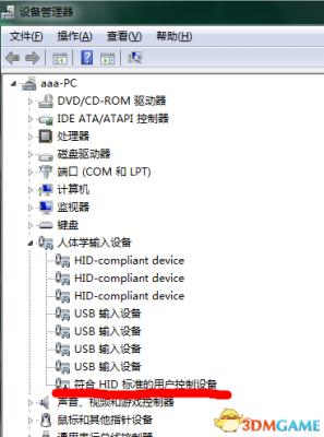第三步:点击人体学输入设备前面的小三角,里面找符合HID标准的用户控制设备,右键禁用。
