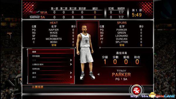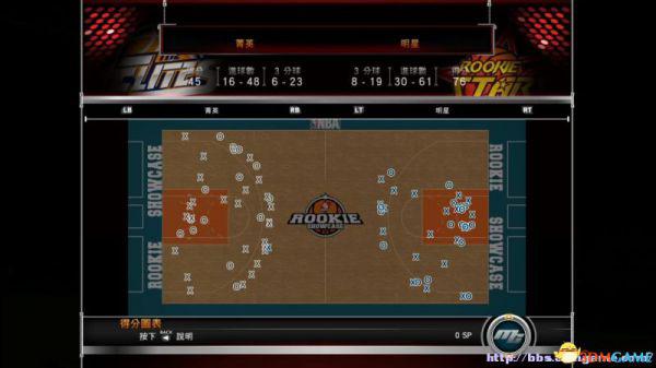 得分数据类似数据界面当中的得分表,显示所有球员的得分数据,按LT键、RT键可以查看球员各节赛事当中的得分情况。