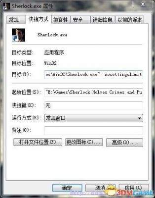 游戏执行文件目录:*:Sherlock Holmes Crimes and PunishmentsBinariesWin32Sherlock.exe