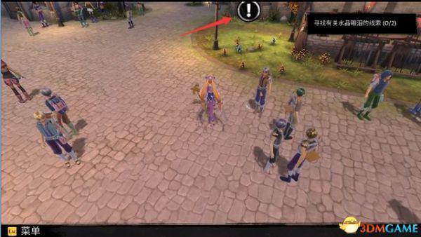 进城之后,根据界面中的叹号的指引寻找有关水晶眼泪的线索。