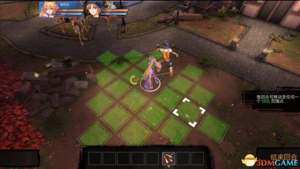 选中角色后,地面的绿色区域表示角色可以移动的范围,点击任意绿色方格即可移动至对应位置。