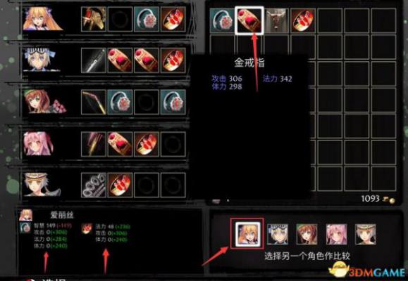 右下角选择一名角色后,再将鼠标放置背包中的一件装备上,可查看该装备与角色已穿戴装备的数值对比。
