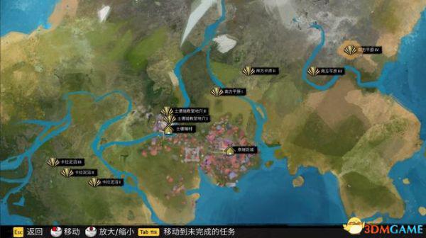 可利用滚轮放大或缩小地图,按TAB键可快捷移动到当前的任务目标。