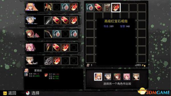 每个角色有1个武器栏和3个饰品栏,每次战斗结束后都会获得装备。