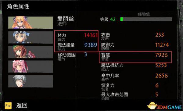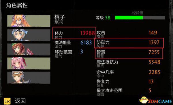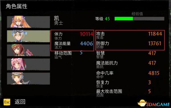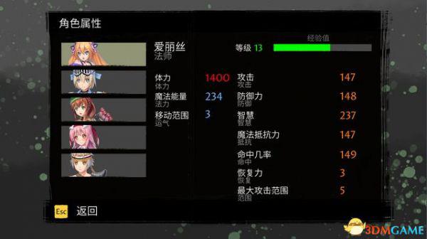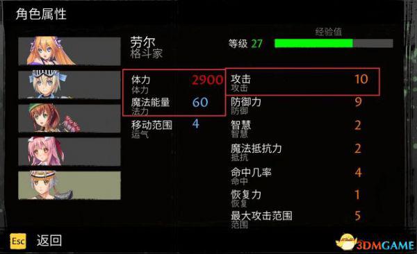角色装备和等级都会影响其属性值。