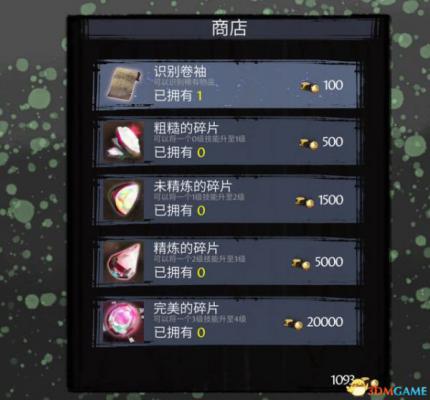 道具店中可以购买鉴定卷轴和技能碎片,用于鉴定装备和升级技能。