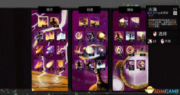 法师的技能分为3个分支,毁灭、创造和操纵。