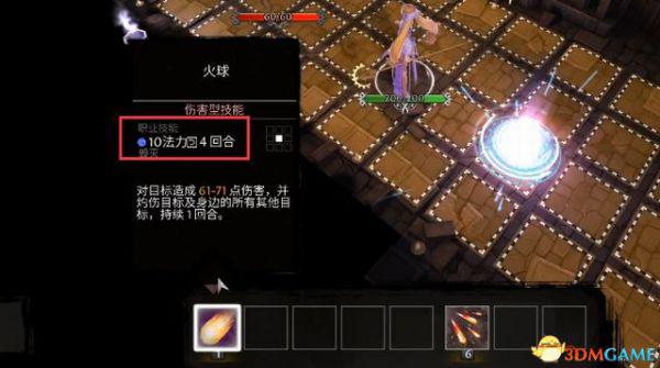 若要使用技能,先点击技能栏中的技能,此时地面显示黄色方格,表示技能范围。