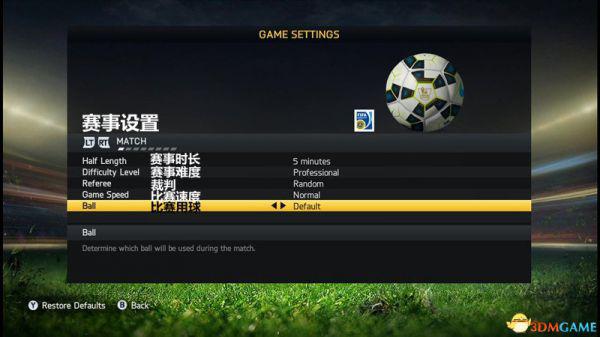 比赛用球:选择比赛用球的外观,可以选择自动选球(根据不同的赛事、天气而选择比赛用球);
