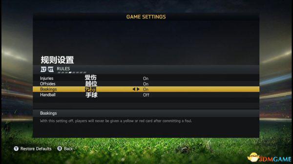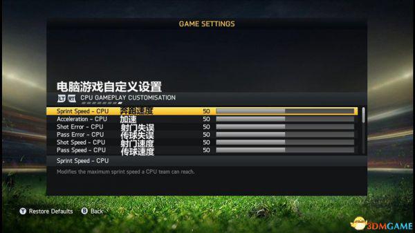 比赛速度:设置游戏速度。游戏速度加快,球员运动速度加快而且时间流逝加快;