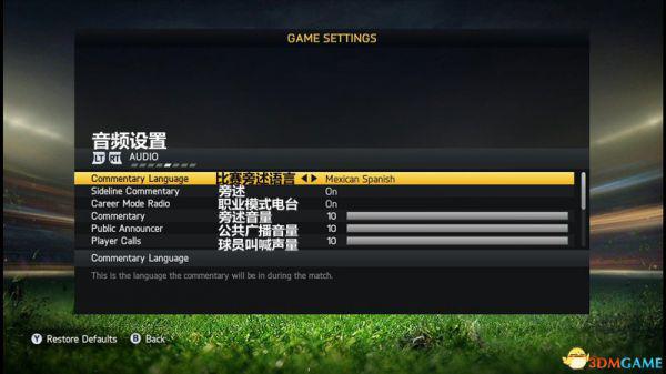 游戏设置可进行赛事、镜头、视野、比赛规则、音频、玩家游戏自定义、CPU自定义进行设置;