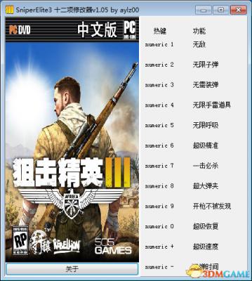 狙击精英3 超级精准无敌全能修改秘籍 十二项修改器