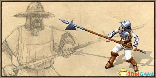 详解:长矛兵为生命值和伤害力俱佳的步兵单位,但不具远距攻击能力,只能以近战方式攻击敌人。长矛兵十分擅长攻击骑兵和建筑物,他们的训练成本低廉,不会花费任何钱币,而且在殖民时代就能训练。除了西班牙以外,多数文明的长矛兵都无法升级到更高等级。
