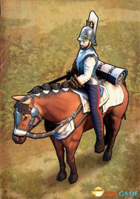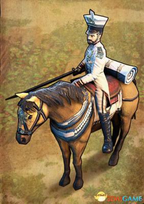 详解:德国骑兵是德国人独有的骑兵单位,他们的速度快,具有较高的生命值,但不具远距攻击能力。德国骑兵与其它近战骑兵单位相同,主要是靠速度冲向敌军,或是快速逃离不利作战的战场。第一个时代之后,从家乡城市运送过来的船运都会有一些德国骑兵,所以扮演德国人的玩家可提早拥有一些军事单位来防守殖民地或攻击敌人。
