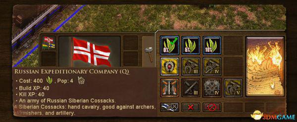 独特部队:俄国散兵、沙皇骑兵。哥萨克骑兵