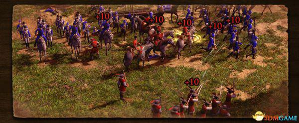 ④骑射手和龙骑兵对重骑兵(近战骑兵)有攻击加成,这种加成在肉搏时会加倍。