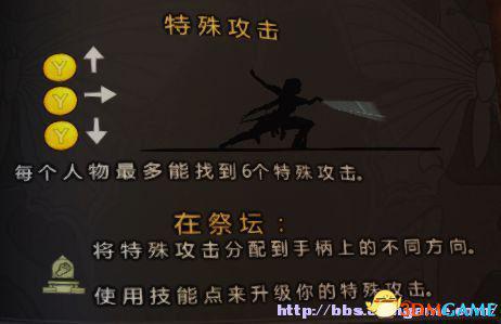 特殊攻击 - 也就是我们常说的技能,每个人物能找到六个黄色晶球,