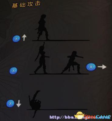 基础攻击 - 每个人物的攻击招式都不一样,搭配不同的方向键的招式动作和效果也不一样: