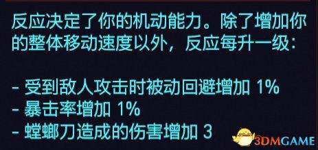 反应决定了机动能力、整体移动速度和中近身战斗能力。