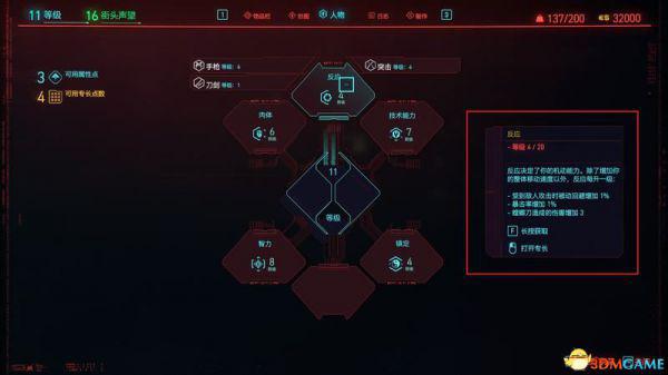 《赛博朋克2077》全属性专长技能详解 全技能成长奖励