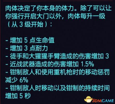 肉体决定了身体肌肉能力,可以让角色强行开启大门、威胁他人。