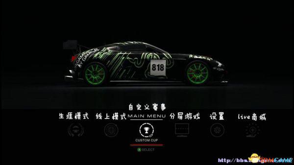 在主界面当中包括了职业生涯模式、线上模式、自定义(杯赛)赛事、(2人)分屏游戏、游戏设置和live(psn)商城。