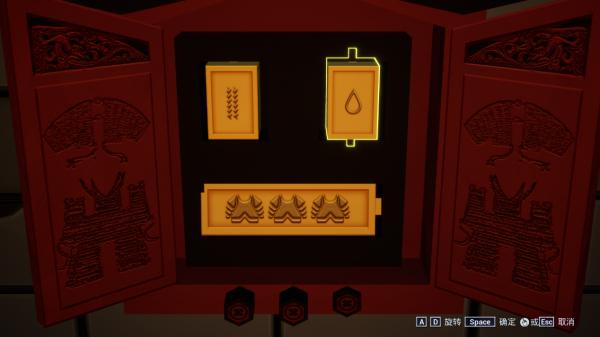 从绿色字体提示得知藤甲的制作方法为,先用水泡,再晒太阳,最后用油浸泡,这样才能制造成功。三次转动的图案需按照此提示来进行。