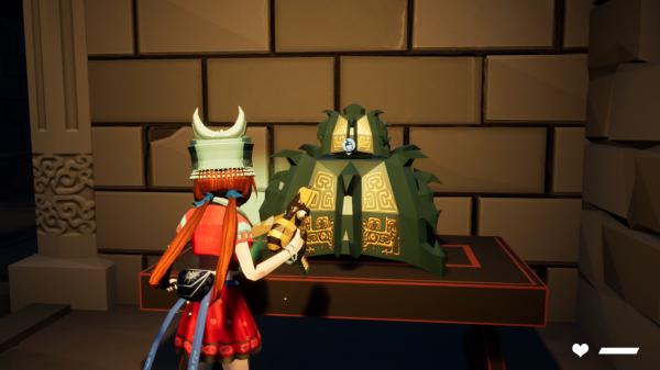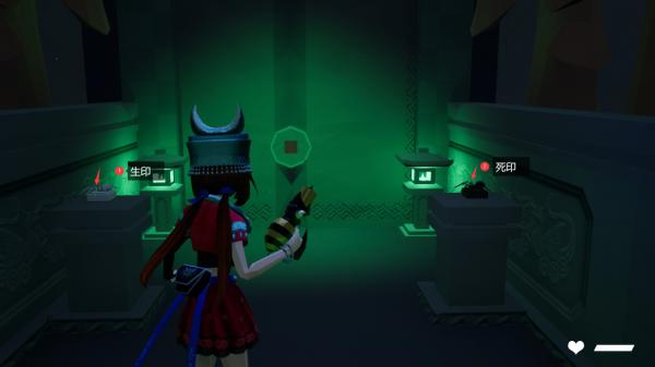 继续往前走会发现主棺椁在一个浮台上,中间有水,无法通过。旁边有个机关,需要找到合适的物品放入机关才可激活道路。
