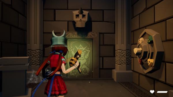 将骷髅头放入大门处机关,按颜色旋转后即可开启大门,前往西区墓室。