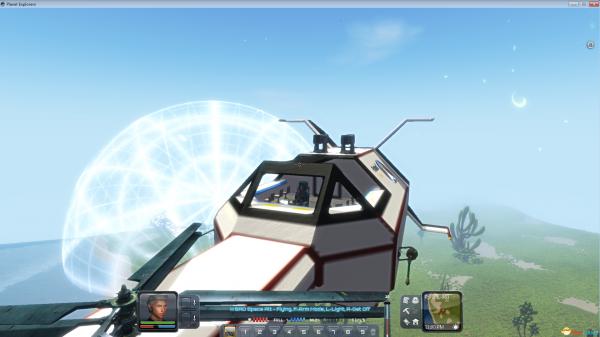 目前只上了4个飞行机枪,4个飞行激光发射器,2个导弹发射器(防御塔,自动攻击),8个乘客位置。飞行平稳,转向过度灵敏=.=!前面可以继续加装武器,后部加重的话估计要调整螺旋桨位置,不然要后滚翻了……