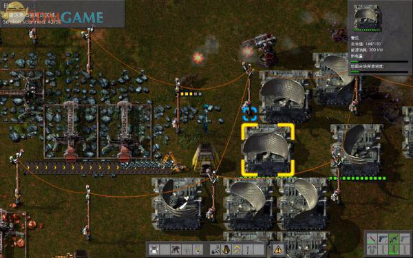 收集到铁板X75、铜板X30,制造出雷达放到地上进行地图区块的扫描,雷达越多扫描得越块,多造几座一起扫,否则这个过程会非常漫长。其间注意给熔炉和锅炉补充燃料,并给炮塔补充弹夹。