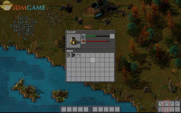 石炉是一种设施,制好会出现在屏幕下方的设施栏里,选取它放置到地面上(显示绿色的位置才能放)。砍伐木头或采集一些煤,点击地上的石炉出现熔炉工作界面,有燃料和材料两种格子,将煤或木头放到燃料格,铁矿放入原料格,开始熔炼。