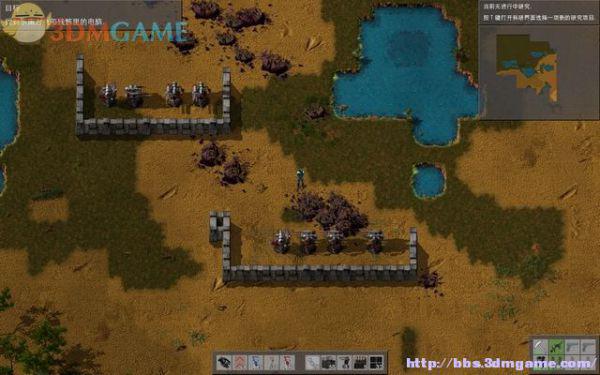 接下来要前往东南方的另一处残骸调查,那边的虫巢密布,沙虫遍地,非常难以接近。这里利用石墙修筑碉堡,层层朝东南的虫巢推进,遇到虫群就把它们引到碉堡附近射杀。