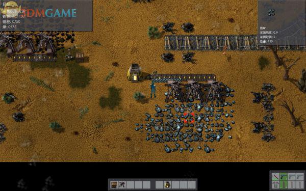 下面要制成铁板X150、铜板X50,采集煤X75,铁板和煤利用当前的设备即可轻松达成。现在在铜矿上布置生产线,将采掘机、传送带、机械臂和石炉排放好。