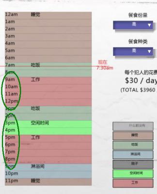 首先,你要确保你给犯人在“报告”一栏的“管理制度”中制订了“工作”或“空闲”时间段的安排(如下图)