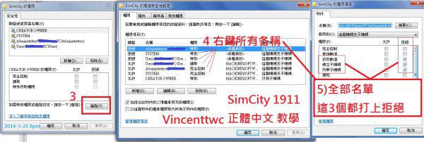 注意步骤4)中点选所有用户名 并一个一个按 [编辑] 修改 3个权限项目 (((并非按右键)))