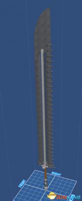 锯齿大刀:21.6KG 刀刃、锯齿为钢材质,中间银柱+末端银配重球,木柄,攻击124。