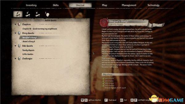 你可以定位任何一条主线,支线,故事,挑战任务,这里将显示它们的内容和完成度。