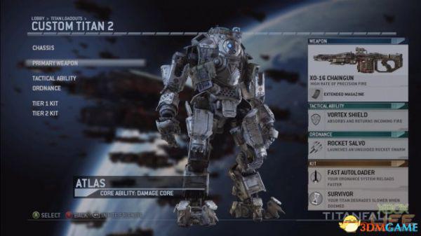泰坦可以加装两个主动启动的能力,一个是战术能力而另外一个则是外挂的武装,在《神兵泰坦》Beta测试中,我们可以使用磁力护盾(左手)以及外挂的飞弹发射器(右肩)。而主要武器目前可以选择重型链枪、榴弹发射器以及四连装火箭发射器等。而且泰坦可以启动核心能力,在你呼叫泰坦之后就会启动计时器,启动核心能力会在短时间内强化泰坦本身的作战效能。例如Atlas泰坦的核心能力就是「伤害输出核心」,启动之后会在短时间内增加泰坦武器的伤害输出(不太科学)。