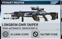 长弓-DMR狙击步枪,半自动狙击步枪,可装配6倍镜以及一个未知的更高倍率的瞄准镜,其他未知。
