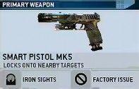 智能手枪,锁定附近的目标,可装备机瞄,枪口抑制器,其他未知。