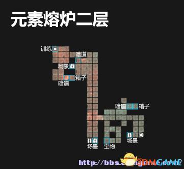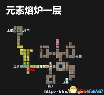 0.7 书籍:创世神话 2.5 场景:元素熔炉2层 4.3 箱子,金钥匙 1.21 场景:元素熔炉4层 1.11 上锁的门(需要金钥匙)